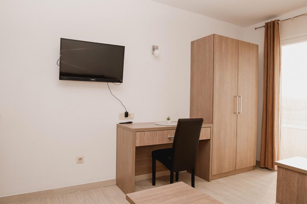 Each apartment features a balcony with views of the sea or the Biokovo mountain, offering a peaceful space for families to relax and enjoy the beauty of Drvenik.